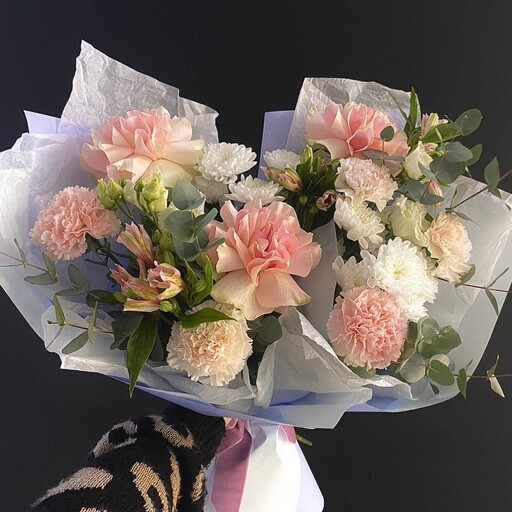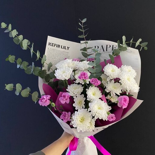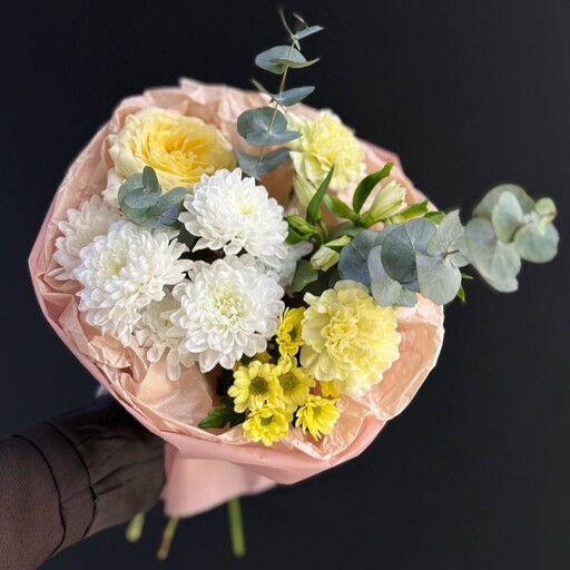Изящный букет, сочетающий в себе чистоту и утончённость. Основу композиции составляют пышные белые хризантемы, создающие ощущение свежести и лёгкости. Нежные розовые кустовые гвоздики добавляют букету романтичности и глубины, а веточки эвкалипта придают воздушность и завершённость образу. Подарите эмоции с букетом «Нежная симфония»! 🌸